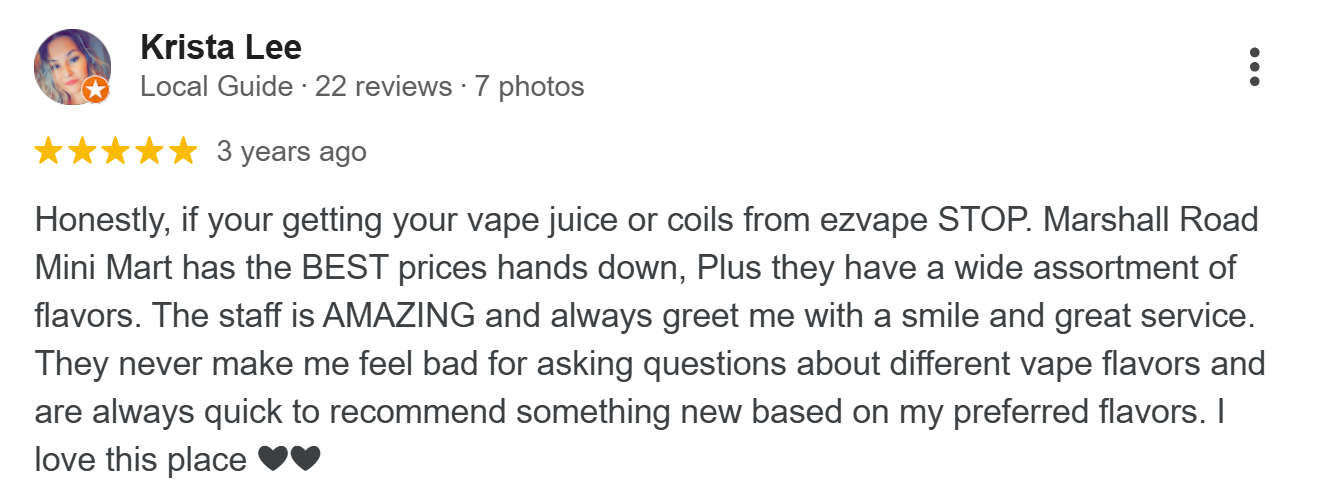 Marshall Vapes started as a small convenience store back in 2001, built on the foundation of providing great products at unbeatable prices. Over the years, our customers have loved our selection and service so much that we knew we had to take it online—so more people could experience what makes us different.