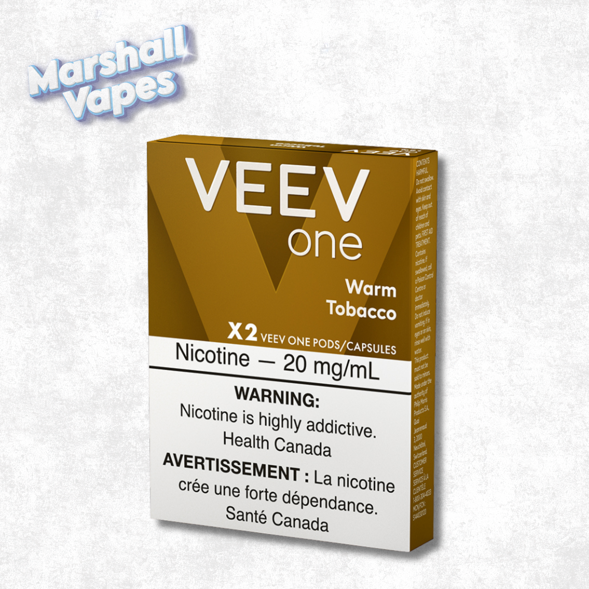 Each pack includes 2 VEEV ONE Warm Tobacco pods and contains 1.8% (20mg/ml) nicotine level and delivers up to 2000 puffs* per pack. VEEV ONE pods are only compatible with VEEV ONE devices.